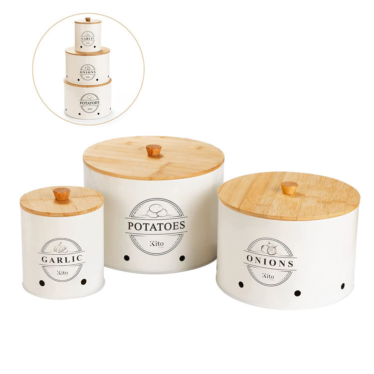 Ensembles de bidons pour comptoir de cuisine 3 pièces ail pomme de terre oignon gardien bidons de cuisine pour garde-manger organisation et Stora